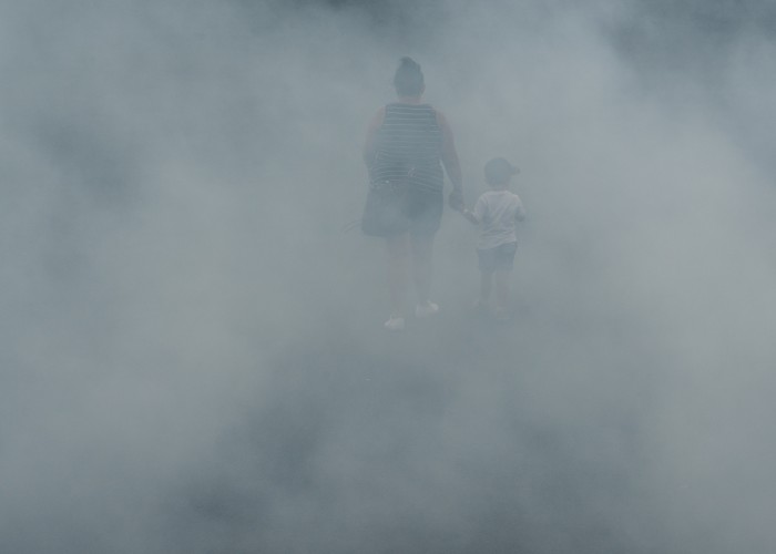 Angry Black Snake contrasts the joy of gathering in celebration of a shared love of cars with dream-like scenery that is neither distinctly pleasant nor clearly post-apocalyptic. Despite their enjoyment of the burnout competition, Corridore’s contextless figures elicit a sense of dis-ease in the viewer that remains unceasingly relevant in conversations around man’s impact upon the environment. The power of these works lies in their contrast between the easeful gestures of the participants and the seemingly disastrous context.